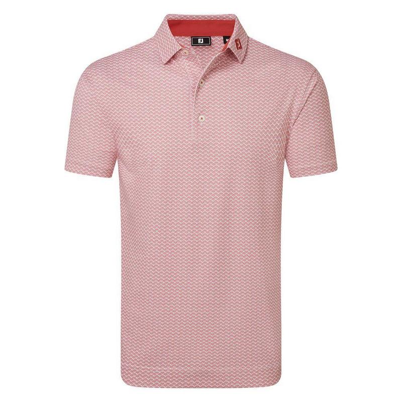 FootJoy Scallop Geo Print Pique Golf Polo Shirt - Nantucket Red